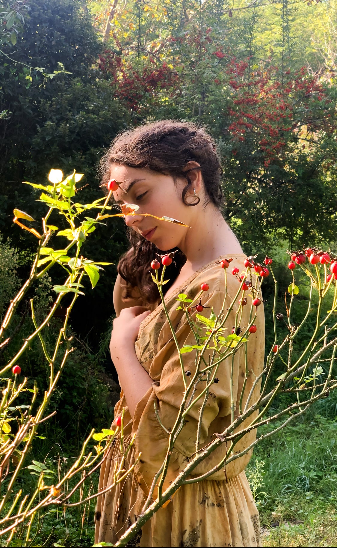 My name is Arianna Gennari, and I am a botanical artist and farmer. My passion for plants, art, and beauty has always been a part of me, leading me to explore these worlds deeply and then combine them into unique and sustainable works. Today, I create handmade, plant-dyed natural garments that tell a story of connection and respect for nature.
